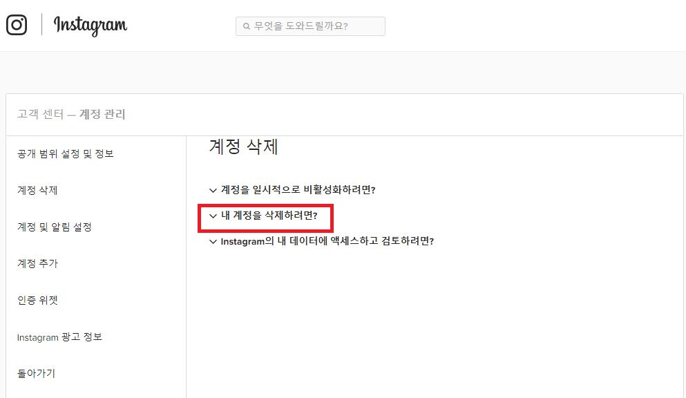 3) 내 계정을 삭제하려면? 을 클릭해주세요