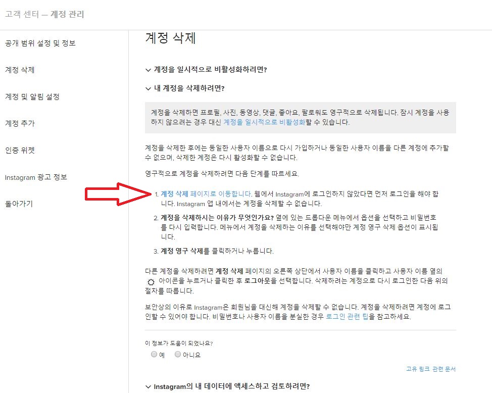 4) 1. 계정 삭제 페이지로 이동합니다. 를 클릭해주세요