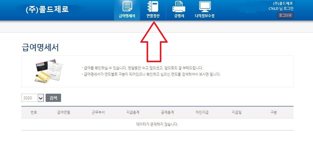 3) 로그인하시면 급여명세서 옆에 연말정산을 클릭해주세요