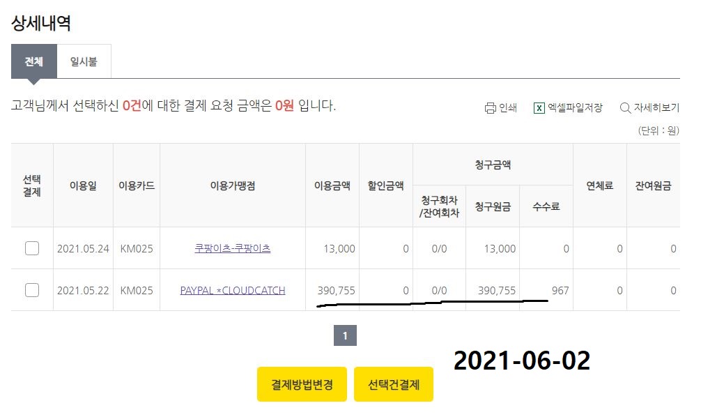 ※ 판단은 개인한테 있습니다, 한번 잘 알아보시고 해 주십시오. 만약에 귀찮으다 생각하시면 그냥 카드 수수료 내고 제가 진행한 방식으로 하셔도 좋아요