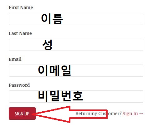 3] 이름, 성, 이메일, 비밀번호 입력 후 가입하기 눌러줍니다