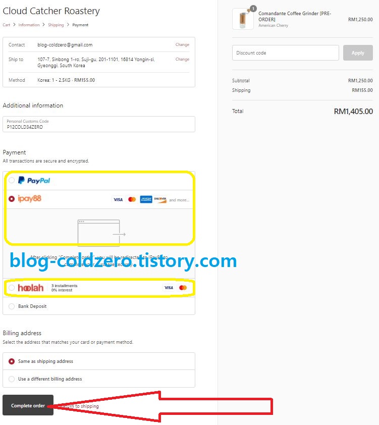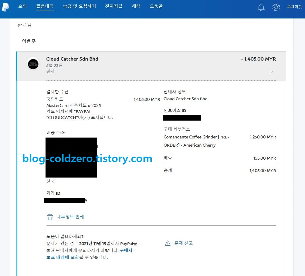 코만단테 커피 그라인더 해외 직구 방법 (대리구매 X) + 배송 본문