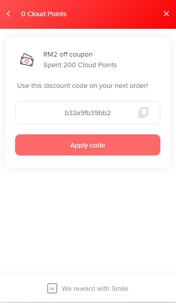 5] 포인트 교환시 Redeem 누르면 쿠폰 코드가 나옵니다