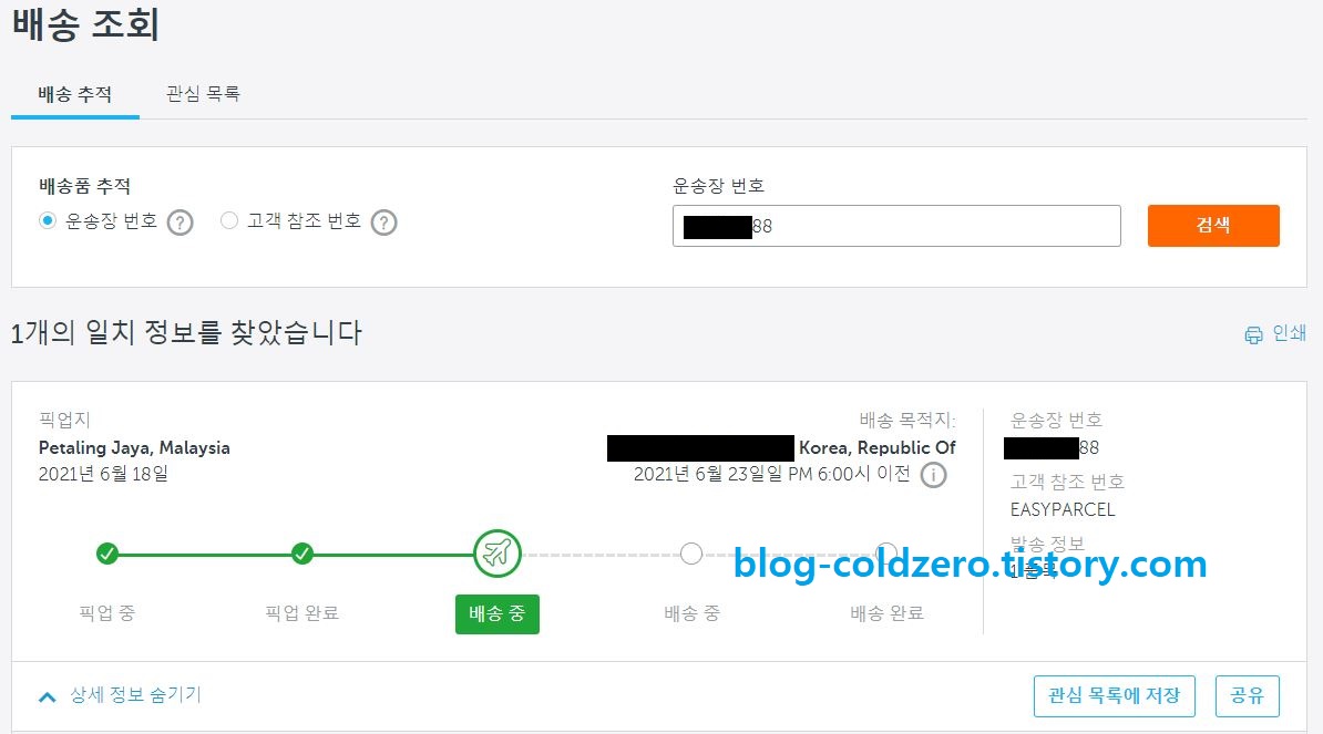 참고로 따로 추가적으로 관세/배송비 지불한 건 없습니다. 바로 사이트에서 결제할 때 MYR 1,405 지불한 게 배송비/관세 등 다 포함된 가격입니다. 물건 받았을 때 본인 확인차 사인만 했습니다.