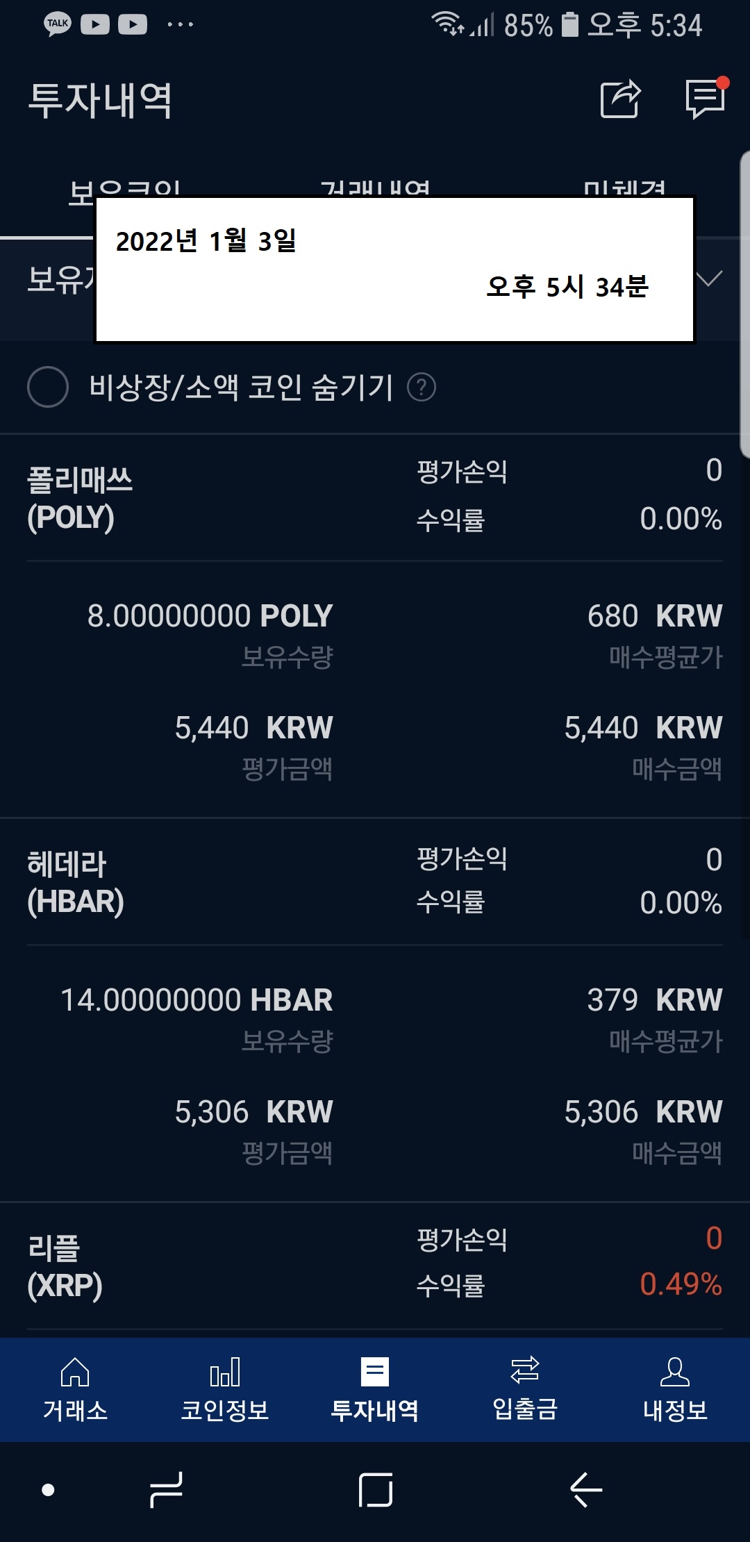 종목은 헤데라, 폴리매쓰 사실 비트코인이 더 떨어질껄 알지만 그냥 매수했다 어차피 모아갈 친구들이라